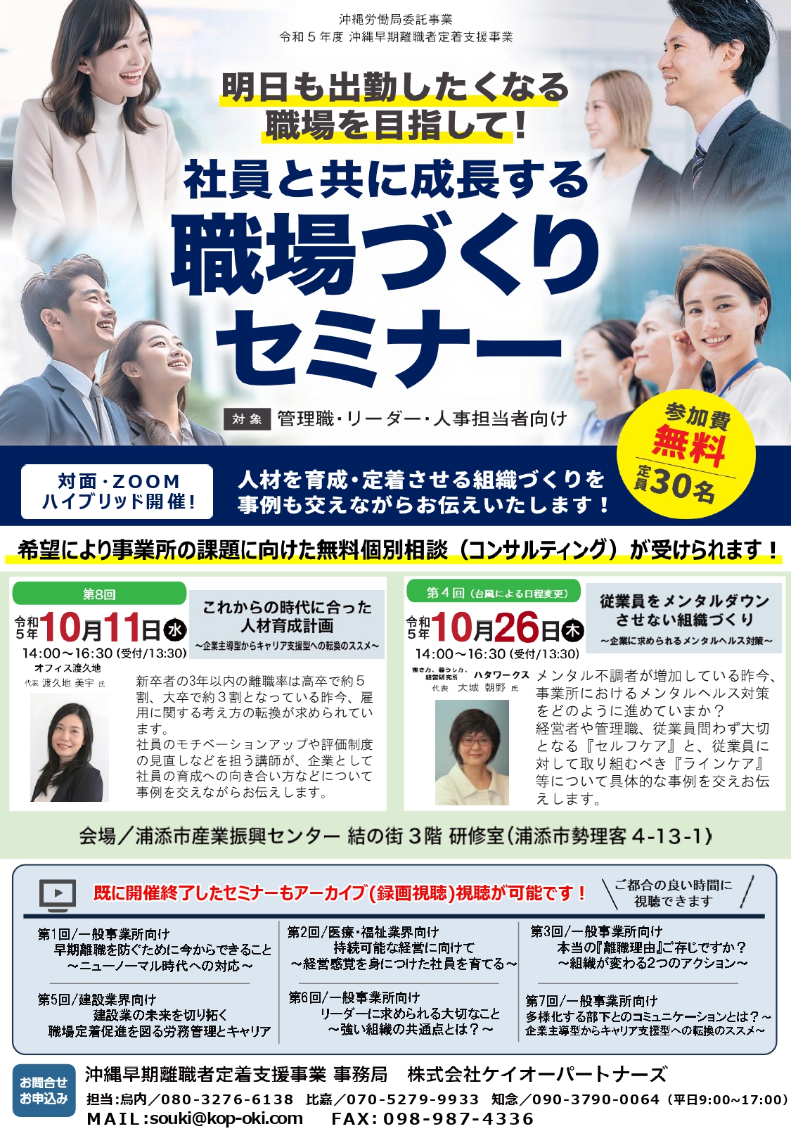 2023年10月 沖縄県労働局の沖縄早期離職者定着支援事業(受託事業者:株式会社ケイオーパートナーズ)