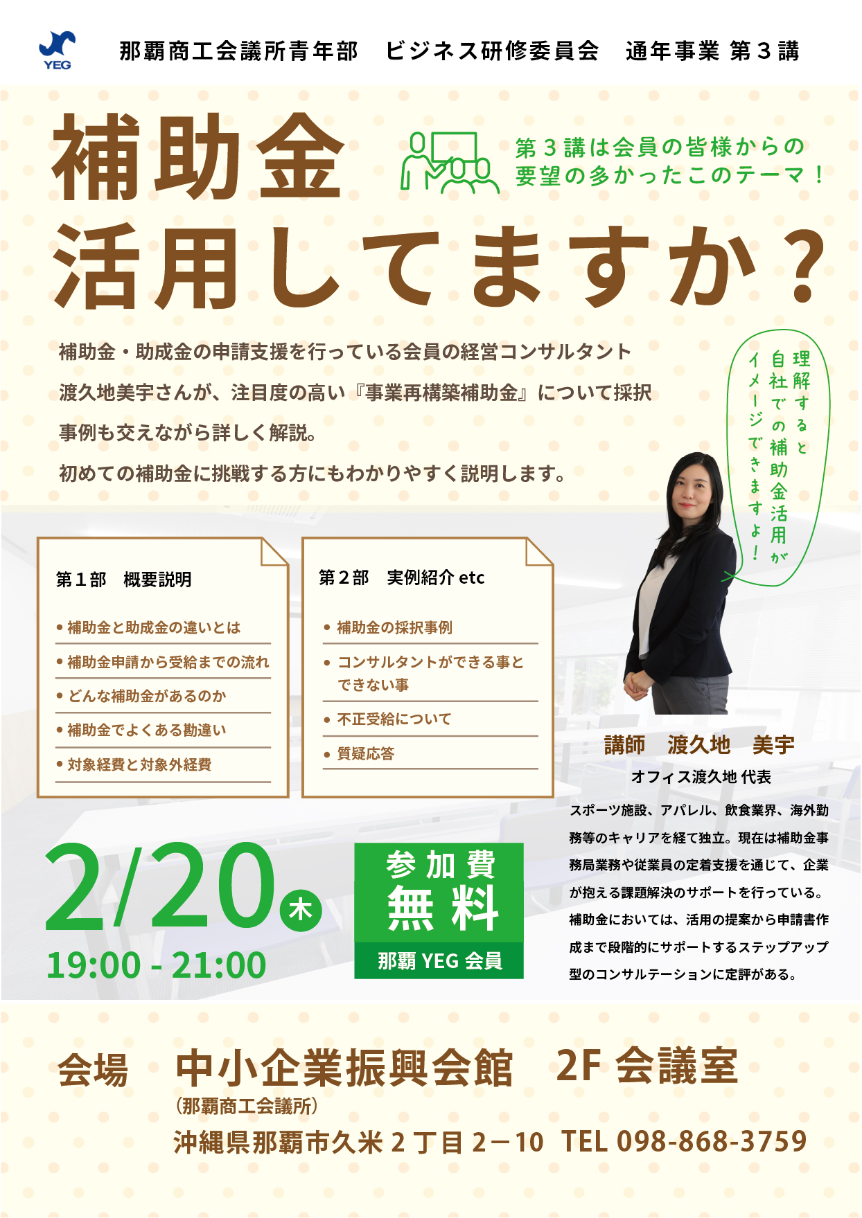 2025年2月 那覇商工会議所青年部にて「補助金、活用していますか?」